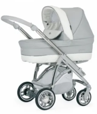 Carrito de bebé de la marca Bebecar. - Color gris claro. - Capazo y silla. - Maxi cosi - Chasis plegable.