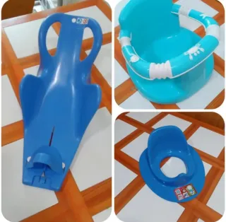 Pack de artículos para el baño y el entrenamiento del orinal de bebés y niños pequeños. Incluye un asiento de baño y un orinal. - Asiento de baño azul con barra de seguridad. - Orinal azul con base ancha.