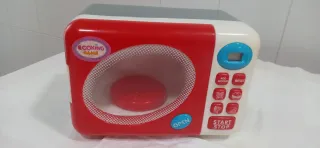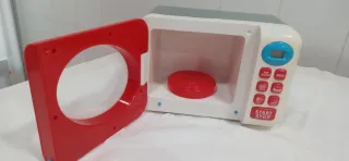 Divertido microondas de juguete para horas de juego. Con luz, sonido, temporizador y movimiento del plato. - Diseño en color rojo y blanco. - Puerta transparente para ver el interior. - Botones interactivos con iconos. - Incluye plato giratorio rojo.