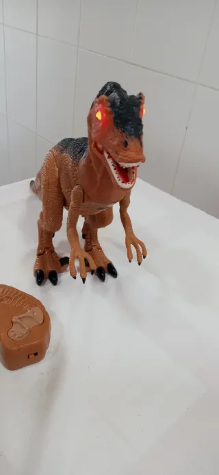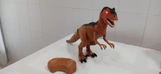Dinosaurio de juguete con control remoto. Sus ojos se iluminan con luces rojas. Anda, mueve la cabeza y ruge - Diseño realista de dinosaurio. - Incluye control remoto para su manejo.