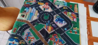 Se venden dos mantas de juego con diseño de circuito urbano para niños. Ideales para crear un espacio de diversión. - Diseño de ciudad con carreteras, edificios y zonas verdes. - Motivos infantiles. - Material suave y resistente.