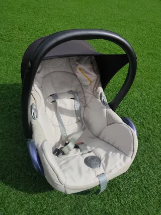 Maxi-Cosi / portabebés para bebé (Grupo 0+) Silla portabebés para coche en buen estado, usada durante 2 años. Muy cómoda y acolchada para recién nacidos. Incluye arnés de seguridad de 3 puntos y asa para transportarla fácilmente. ✔ Marca: Maxi-Cosi ✔ Grupo 0+ (desde recién nacido hasta aprox. 12-13 kg) ✔ Color beige neutro ✔ Funda acolchada y desmontable para lavar ✔ Se instala con cinturón de seguridad del coche (no tiene base Isofix) ✔ Recientemente higienizada con tratamiento de ozono ✔ Bien cuidada y totalmente funcional Ideal como primera silla para el coche o como segunda silla.