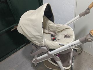 Chasis de aluminio ultraligero, plegado tipo paraguas. Sistema modular que permite intercambiar capazo, cuco y silla fácilmente. Silla de paseo reclinable con una sola mano en 4 posiciones hasta la horizontal. Silla reversible. Capazo y maxicosi homologados para llevar en el automóvil. Ruedas dobles delanteras para todos los terrenos. Manillar ajustable en altura. Desenfundable y lavable a 30º. Perfecto estado. Vendo por no usar