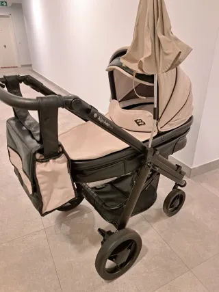 Carro de bebé marca Bebecar en color beige y negro. Capazo , tambien con silla a juego y con base isofix para llevar en el coche. .Con todos sus complementos ...Incluido sombrilla , cobertura lluvia, bolsa ect Precio nuevo 1190€. Enseño factura. - Capazo espacioso. - Chasis resistente. - Ruedas todoterreno.