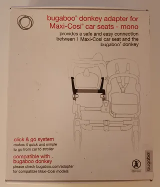 Adaptador para acoplar una silla de coche Maxi-Cosi a un carrito Bugaboo Donkey. Permite convertir el carrito en un sistema de viaje versátil. - Compatible con modelos Maxi-Cosi. - Diseñado para el chasis Bugaboo Donkey.