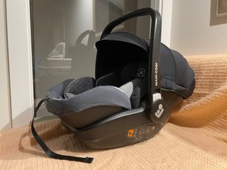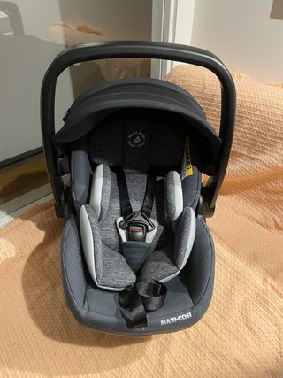 Silla de coche Maxi-Cosi Marble en color negro y gris. Diseñada para la seguridad y comodidad del bebé. - Capota solar integrada. - Asa de transporte ergonómica. - Incluye reductores para recién nacidos. Siempre con funda (se incluye). Muy poco uso. Incluye base Isofix para el coche y adaptadores para carro Bugaboo.