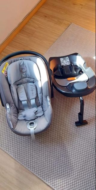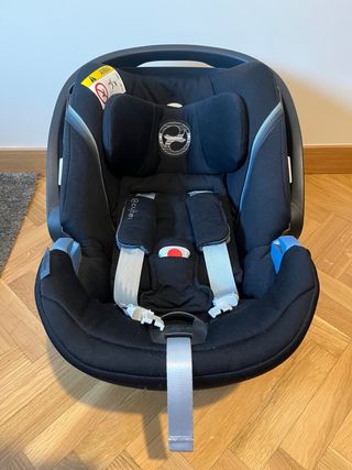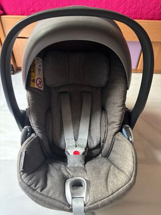 Silla de coche para bebé de la marca Maxi-Cosi Cybex. Diseñada para la seguridad y comodidad del pequeño. - Tejido gris jaspeado. - Arnés de seguridad de 5 puntos. - Capota protectora. - Asa de transporte. - Indicaciones de seguridad visibles. Tiene muy poco uso
