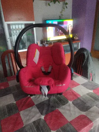 Silla de coche para bebé en buen estado general y completamente funcional. Ha sido usada pero sigue siendo perfectamente utilizable. Solo necesitaría lavado o limpieza de las telas porque tiene polvo normal del uso. La estructura está en buen estado, el arnés y los anclajes funcionan correctamente, el asa de transporte está en buen estado y mantiene los acolchados y reductores para bebé. Es un portabebé tipo grupo 0+, pensado aproximadamente desde recién nacido hasta unos 12-13 kg. Incluye reductores acolchados para bebés pequeños y arnés de seguridad. Ideal para quien necesite una silla funcional para uso diario, como segunda silla