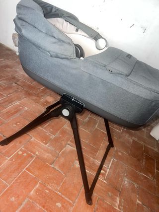 Patas que permiten colocar el capazo y maxicosi en la estructura de forma estable. - Diseño en color negro. - Estructura metálica. -Plegable Está nuevo, no sé ha llegado a usar.