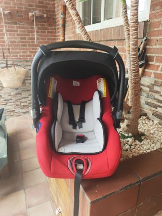 Silla de coche Maxi-Cosi Jane Koos en color rojo y negro. Diseñada para la seguridad y comodidad del bebé. - Capota. - Asa de transporte. - Reductor para recién nacidos.