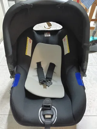 Portabebé (Maxi-Cosi, silla de viaje Grupo 0) de la marca Jané, modelo Koos. - Capota integrada. - Asa de transporte. - Tejido Mild Blue. - Compatible con el cochecito en venta en mi perfil.
