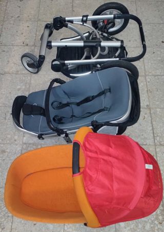 Conjunto de cochecito de bebé Quinny de 3 piezas. - Incluye silla de paseo. - Incluye capazo. - Incluye silla de coche Maxi-Cosi. En perfecto estado. De echo el capazo está con una sola puesta . En su caja original. Se puede ver sin compromiso. El mango de agarre es ajustable en altura. Cuando se pliega se queda totalmente plano al suelo. Con cesta inferior más bolso.