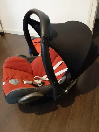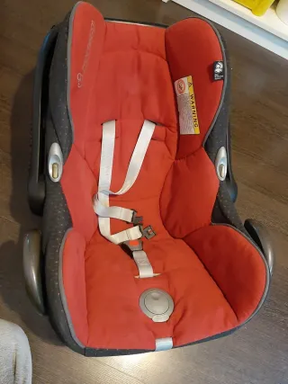 Silla de calidad en perfecto estado de conservación. Se ha cuidado muy bien. Fàcil de montar, aunque no tiene Isofix, pero totalmente recomendable para los más pequeños. Incluye la capota. Silla de coche Grupo 0+ para bebés desde el nacimiento hasta los 12 meses (13 kg). Compatible con todos los cochecitos de Maxi-Cosi, Bébé Confort, Quinny y otras marcas. Funda lavable a máquina (30º) y extraíble sin necesidad de desmontaje del arnés. Muy fácil de lavar. Se puede colocar base Isofix y adaptadores de carro.