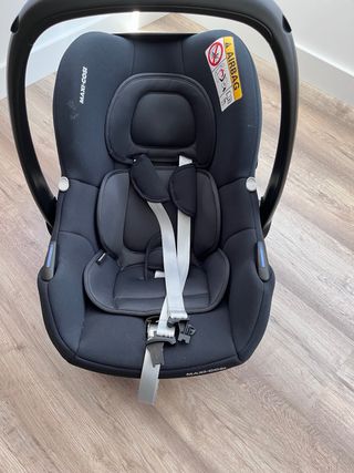 Silla de coche para bebé de la marca Maxi-Cosi. Diseñada para la seguridad y comodidad del pequeño. - Color negro con detalles grises. - Incluye arnés de seguridad de 5 puntos. - Asa de transporte ergonómica.