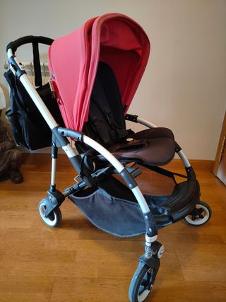 Bugaboo Bee 3 con silla y capazo para bebé (el capazo está desmontado en su caja original). Incluye protector de lluvia original Bugaboo, funda para la silla y Maxicosi con adaptadores para instalar en el Bugaboo. Buen estado.