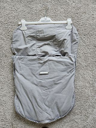 Saco para silla de coche grupo 0 de la marca Pasito a Pasito, compatible con Maxi-Cosi. Está en muy buen estado, ideal para abrigar a tu bebé durante los paseos. - Diseño unisex en color gris, elegante con estampado floral y lunares. - Tejido suave y confortable. - Cierre con cremallera que permite quitar la parte de delante y dejarlo como funda cuando hace mas calor.