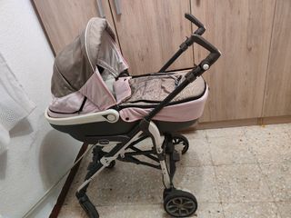 Carro de bebé en color rosa, con un diseño acolchado y elegante.incluye sillita capazo bolso y funda para maxicosi - Bolso a juego. - Ruedas resistentes. - Capota ajustable.