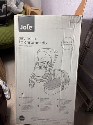 Carrito Joie Chrome DLX en perfecto estado, ideal para paseos cómodos y seguros. Incluye capazo y silla de coche. - Capazo incluido para recién nacidos. - Silla de coche (maxicosi) compatible. - Plegado fácil y compacto. - Diseño moderno y funcional. Con las cajas originales y recien lavados por una empresa especializada