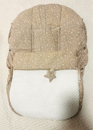 Funda para silla de coche o carrito de bebé con un bonito estampado de estrellas. -marca roxy fuentes - Color beige con estrellas blancas. - Diseño acolchado para mayor comodidad. - Incluye un detalle de estrella decorativa.