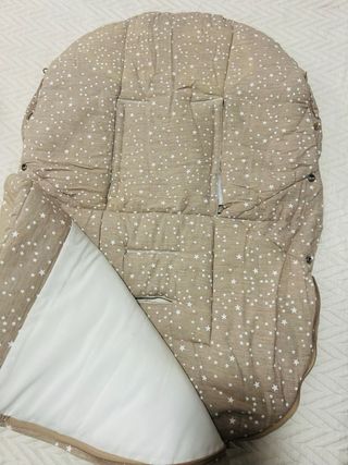 Vendo saco para capazo de bebé de invierno. Color azul clarito con estrellitas pequeñas. Marca Pasito a Pasito. Tiene aberturas por si se quiere usar en silla o maxicosi también. Como nuevo.