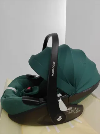Silla de coche Maxi-Cosi Pebble 360 Pro en color verde oscuro. - Diseño moderno y funcional. - Capota integrada. - Asa de transporte ergonómica. - Sistema de arnés de 5 puntos.