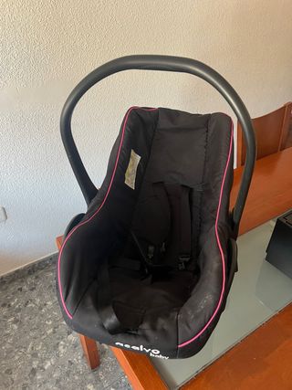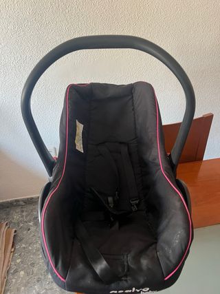 Maxicosi para bebé del grupo 0, ideal para los primeros meses. - Color negro con detalles en rosa. - Incluye arnés de seguridad. - Asa de transporte. - Marca: asalvo baby Está bastante usado