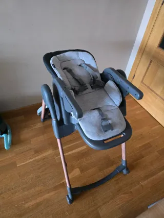 Trona de bebé Maxicosi Minla. Estable, comoda y segura para el bebe. Con bandeja extraible, arnes de seguridad. Totalmente desenfundable para lavar.