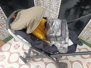 Carro completo con capota intercambiable en buen estado, incluye el maxicosi del grupo 0 y el Moisés con muy poco uso con anclajes para él coche. Muy cómodo ,fácil y ligero en el uso. Incluye plástico para la lluvia y 2 anclajes para las bolsas.
