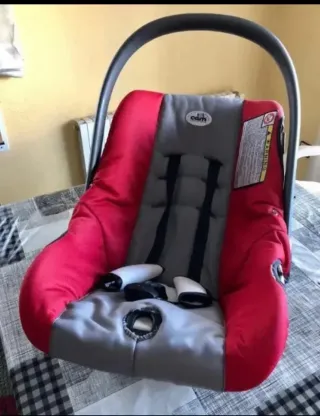 Silla de coche Maxi-Cosi en color rojo y gris. Incluye dos fundas adicionales. - Diseño ergonómico. - Sistema de arnés de 5 puntos. - Asa de transporte. - Incluye dos fundas de repuesto.