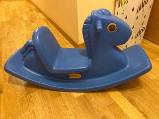 Caballo mecedor de la marca Little Tikes en color azul. - Diseño clásico de caballo. - Base mecedora para balanceo.