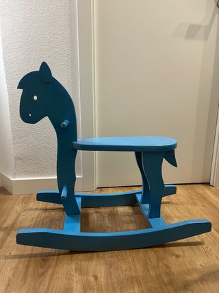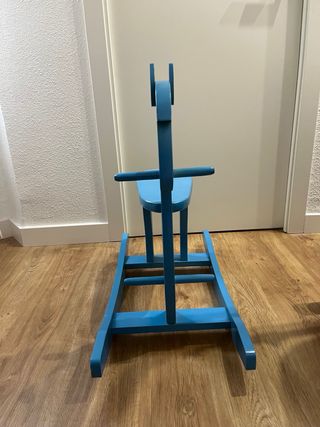 Caballito balancín de madera en color azul. - Diseño clásico de caballo. - Asiento cómodo para niños. - Base mecedora para balanceo. NUEVO SIN USAR