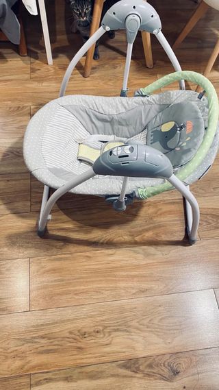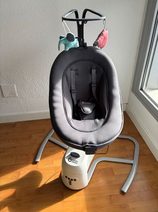 Mecedora eléctrica para bebé, ideal para los primeros meses. Su diseño moderno y funcional la hace perfecta para cualquier hogar. No se ha usado nunca, está en su caja original.es nueva a estrenar. Negociable. - Capota ajustable. - Barra de juguetes. - Malla transpirable en los laterales.