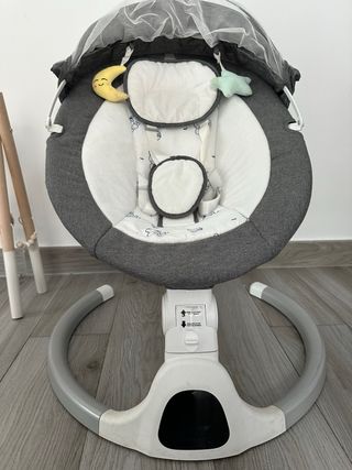 Vendo mecedora eléctrica para bebés, en perfecto estado. Es de color gris y tiene un diseño moderno y elegante. -Tiene música relajante,de naturaleza,nanas.. -Tiene 4 velocidades. - Incluye un arco de juegos con juguetes. - Tejido suave y acolchado. - Estructura ligera y fácil de transportar. -Incluye una mosquitera para poder estar en el exterior.