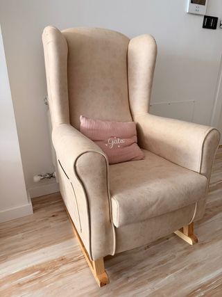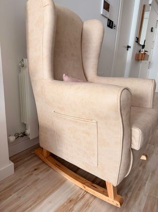 Mecedora tipo sillón, ideal para la lactancia como nueva. Poquísimo uso. Precio original: 249€. La vendo en 150€ ✨ CARACTERÍSTICAS: La mecedora de lactancia Roma está diseñada para la lactancia materna con un estilo moderno. Es resistente y fácil de cuidar gracias a su tapizado antimanchas. Ideal para el salón, el dormitorio o una zona de descanso, su diseño compacto la hace perfecta para espacios reducidos. ✨ DIMENSIONES: Altura total: 96 cm | Ancho: 74 cm | Profundidad: 77 cm | Altura del asiento: 44 cm | Respaldo: 60 cm | Ancho del asiento: 46 cm | Profundidad del asiento: 50 cm | Capacidad máxima: 100 kg.
