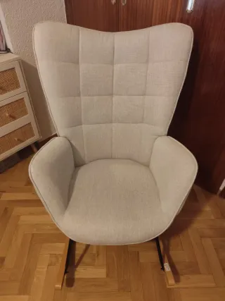 Vendo preciosa mecedora balancín de diseño nórdico de la marca Kenay Home, modelo "Hilde" en color beige. 📅 Comprada en 2024. Es un sillón comodísimo, con respaldo alto tipo orejero que recoge perfectamente la cabeza y la espalda. Ideal para la lactancia, dormir al bebé o como rincón de lectura en el salón. Se vende por falta de uso. 💎 Está en muy buen estado, tal como se ve en las fotos actuales. 💰 Su precio actual en tienda es de 219€. La vendo por 100€. 📍 Recogida en Godella, Valencia. 🚘 Transporte: Cabe en la parte trasera de un coche con los asientos abatidos. ¡Pregunta sin compromiso!