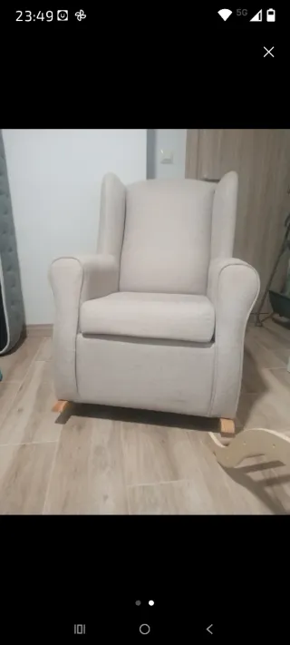 Vendo mecedora de lactancia que ha cumplido su misión con creces. Ha acompañado muchas tomas, arrullos y momentos especiales, así que se nota que ha sido muy utilizada… pero precisamente por eso es cómoda, resistente y funcional. ✔️ Mecedora estable y suave al balancearse ✔️ Muy cómoda para dar el pecho o el biberón ✔️ Ideal también para dormir al bebé o leer cuentos ✔️ Estructura firme, sigue cumpliendo perfectamente su función Estéticamente tiene signos normales de uso (propios de una etapa tan intensa y bonita), pero nada que afecte a su uso. Perfecta si buscas una mecedora práctica, sin gastar mucho