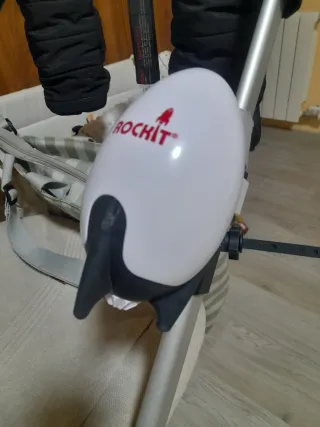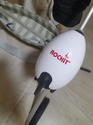 Mecedora Rockit para bebés, ideal para calmar al pequeño. Útil para las paradas o mecer un carro o una cuna. Sirve para cualquier espacio, ya que su abrazadera se abre y se ajusta donde quieras. Además tiene diferentes posiciones con la ruleta para ir de menos velocidad a más. Con un diseño de un cohete, y está prácticamente nuevo.