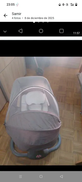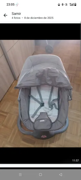 Mecedora para Niños hasta 9 kg, Plegable, con Mando a Distancia y Bluetooth, Funciona con Pilas/Electricidad, Arnés 5 Puntos, Visera Solar Incluye cargador Tiene velocidad de balanceo, Temporizador y 10 melodías. Usada una vez.