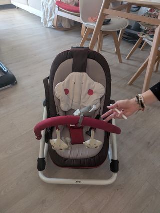 Mecedora para bebé en perfecto estado, con muy poco uso. Es muy práctica y fácil de guardar. - Diseño ergonómico y acolchado. - Estructura metálica resistente. - Plegable para fácil almacenamiento.