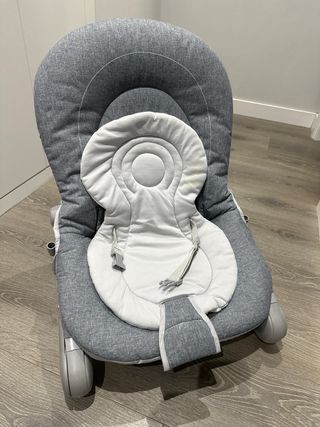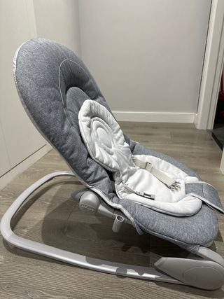 Mecedora para bebés Chicco Hoopla en color gris. - Diseño acolchado y confortable. - Barra de juegos extraíble con juguetes. - Respaldo reclinable en varias posiciones. - Plegable para un fácil almacenamiento y transporte. Se encuentra en perfecto estado, usado muy pocas veces.