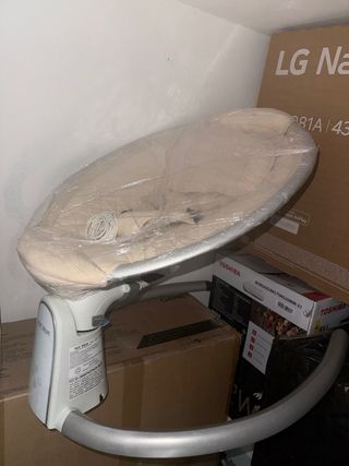 Mecedora de la marca 4moms. - Diseño moderno y elegante. - Base estable y segura. - Aro superior para colgar juguetes.