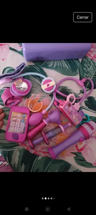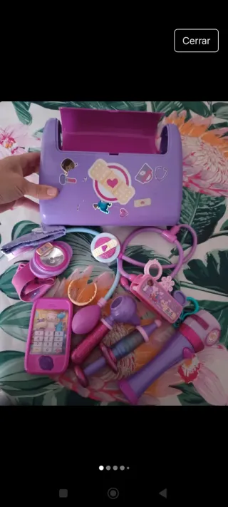 Conjunto de juguetes para pequeños doctores y doctoras,todo en su maletín . Incluye varios accesorios para jugar a curar. Todo de la doctora juguetes. - Maletín de doctora. - Estetoscopio luminoso con botón. - manguito de la tensión. - Jeringuilla. - Termómetro. - Espejo. - Teléfono de juguete, interactivo. - Microfono interactivo, canta canciones. - Luz linterna. - y más accesorios, bolsito, set de curas. Todo en muy buen estado