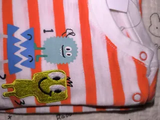 Conjunto de pijama o disfraz de Papá Noel para bebé de 18 meses. - Color rojo. - Gorro a juego. - Cuello blanco. - Dos bolsillos blancos en la parte delantera. - Puños y tobillos con borde blanco.