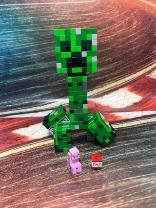 Set Lego Minecraft. - Figura del Creeper. - Incluye un cerdo y un bloque de TNT. - Se envia montado y pegado.