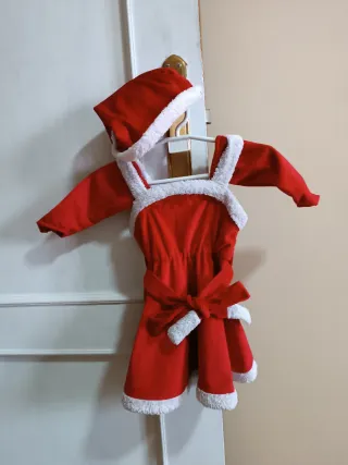 Adorable conjunto de Mamá Noel para bebé, perfecto para las fiestas. - Vestido rojo con detalles blancos. - Incluye gorro a juego mangas Talla 1-2