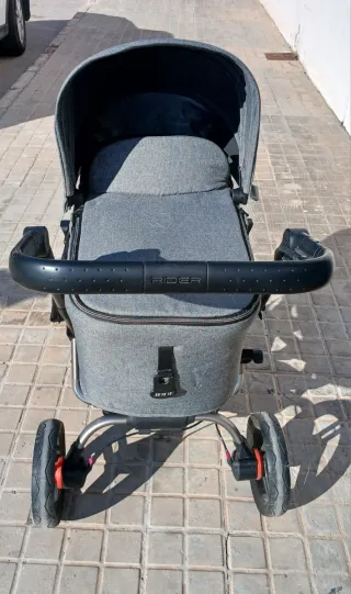 Carro de bebé Jane Rider en color gris. Diseño moderno y funcional. - Chasis de aluminio. - Ruedas todoterreno. - Manillar ergonómico. - Capota extensible. Incluye funda para lluvia.