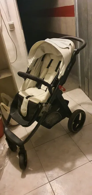 Cochecito de bebé en color beige y negro.incluye Maxicosi con todos sus complementos...esta como nuevo.interesados llamar a la Señora Maria 636870570 - Capota amplia. - Asiento acolchado. - Arnés de seguridad. - Ruedas todoterreno.