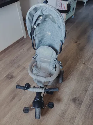 Triciclo evolutivo Kinderkraft en color gris. Se adapta al crecimiento del niño. Carrito de paseo con pedales, se convierte en triciclo, muy comodo para pasear, muy poco uso.