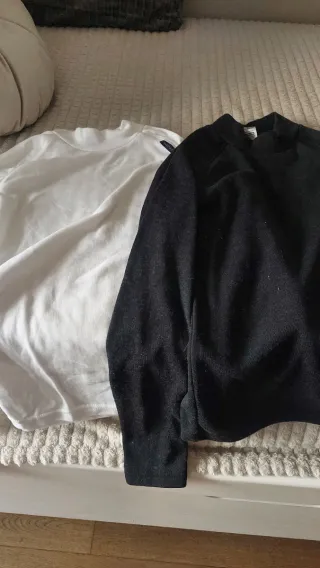 Conjunto de dos camisetas térmicas, una blanca y otra negra. Perfectas para mantener el calor. - Camiseta blanca de manga larga. - Camiseta negra de manga larga.