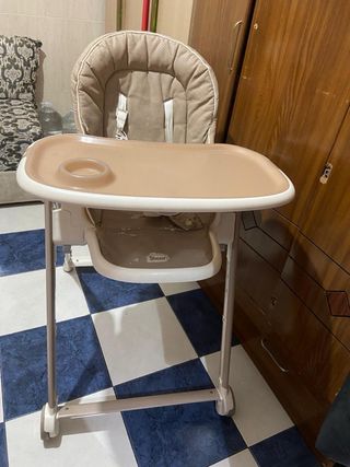 Silla de comer infantil con un diseño moderno y funcional. Perfecta para las comidas de los más pequeños. - Asiento acolchado. - Bandeja extraíble. - Estructura resistente.